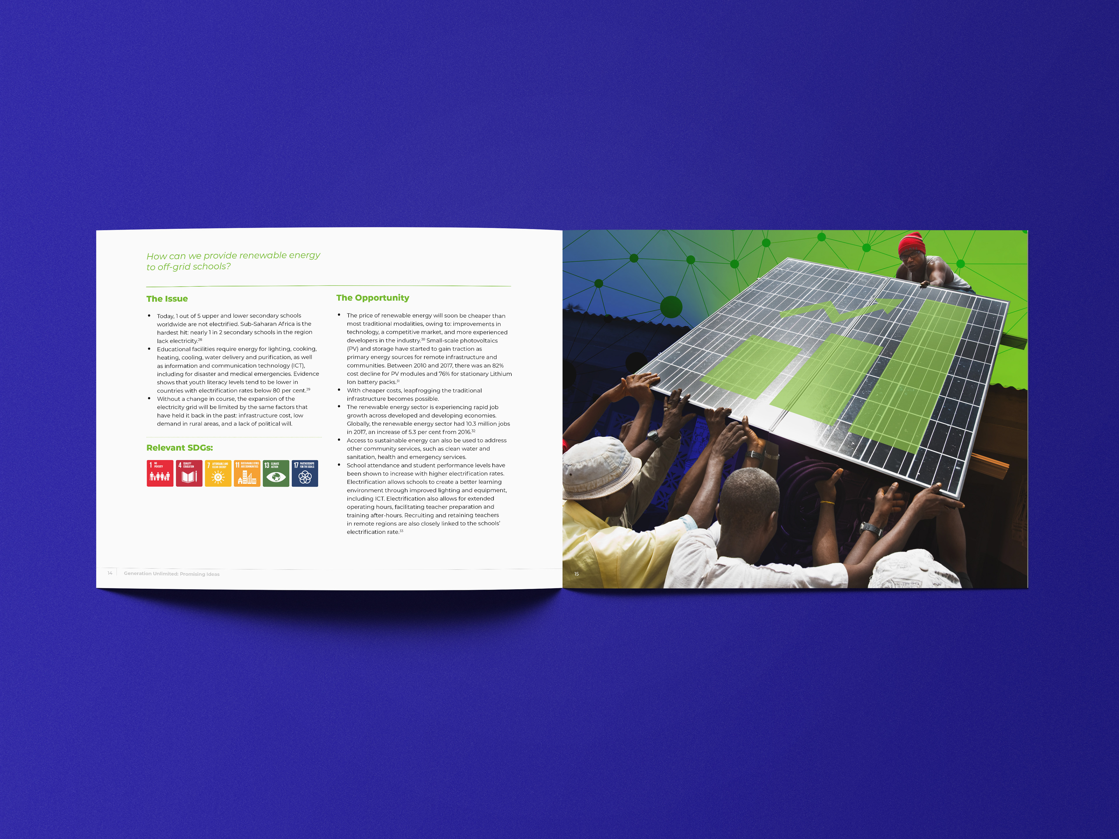 Generation Unlimited is a global partnership that aims to ensure that every young person is in education, learning, training or employment by 2030. By 2030 there will be 2 billion young women and men seeking opportunities for a bright future throughout the world. With education, skills and empowerment, these young people will help transform economies and nations. But a fast-changing global economy demands increasingly specialized skills at a time when many education systems are struggling. Generation Unlimited brings together the private sector, governments, international and local organizations – and young people – to identify and scale up the best solutions for three major challenges: access to secondary age education, acquisition of employability skills and empowerment, especially of girls. We are building a new and dynamic model: co-creating innovative solutions; brokering support, mentoring and funding; placing young people at the forefront of change.